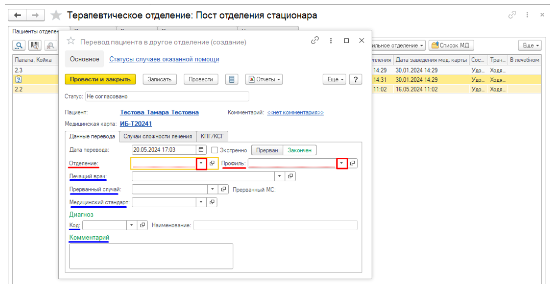 Аналогично осуществляется перевод внутри отделения (рис.5).