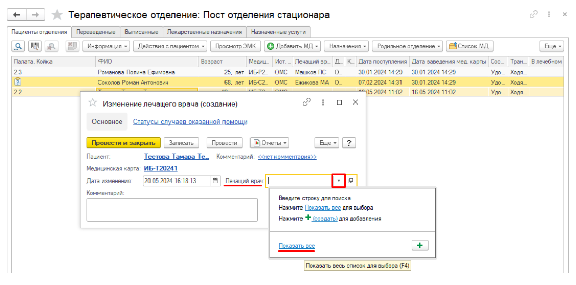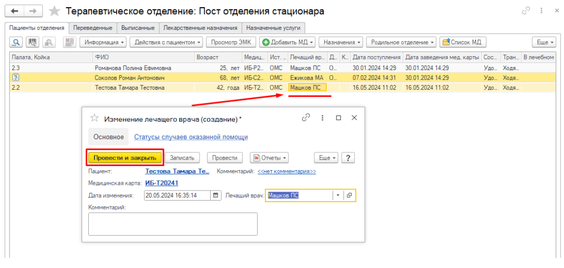 выберите нужного врача (рис.8) и нажмите «Провести и закрыть»..png)